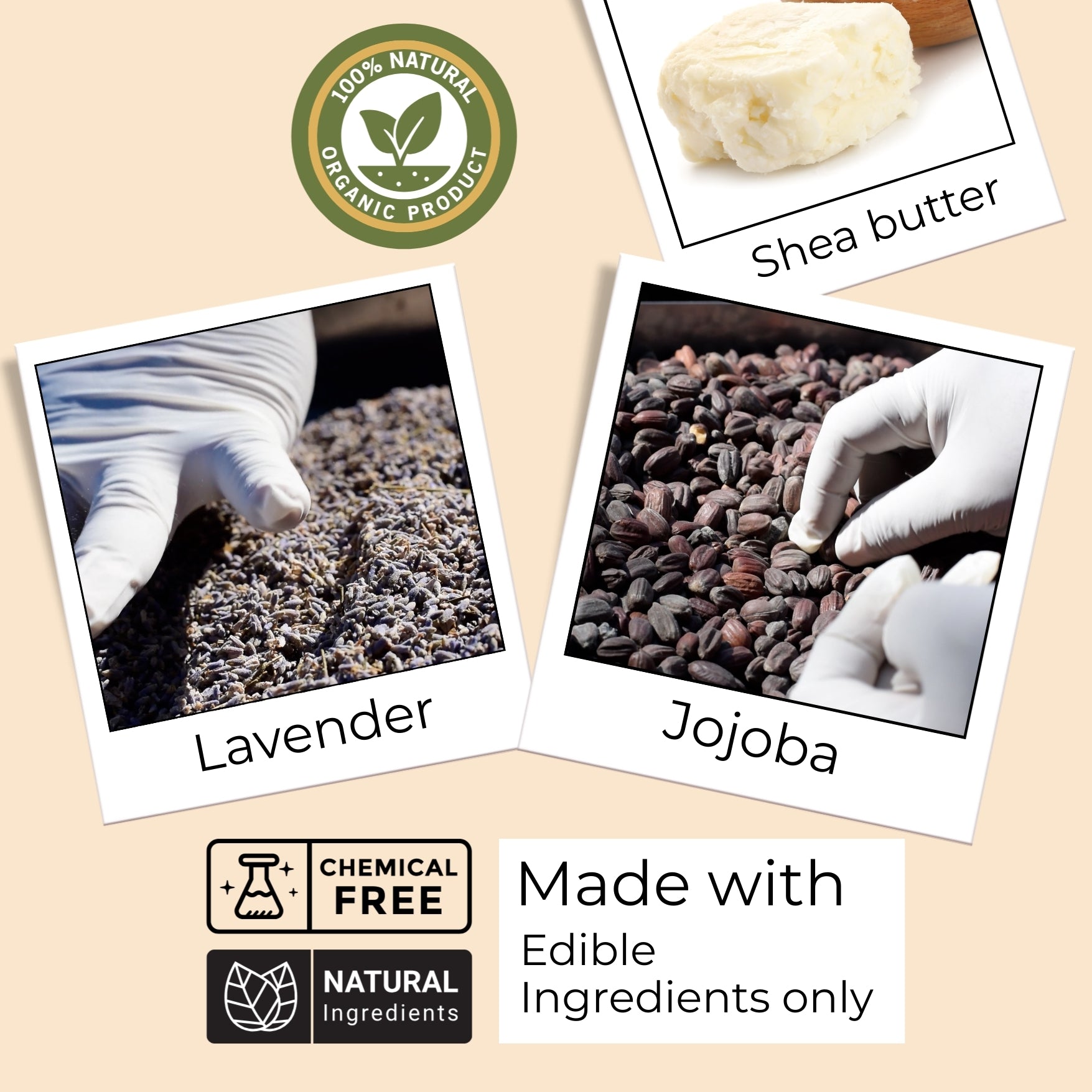 Shea butter, Jojoba Oil, Lavender Essential Oil