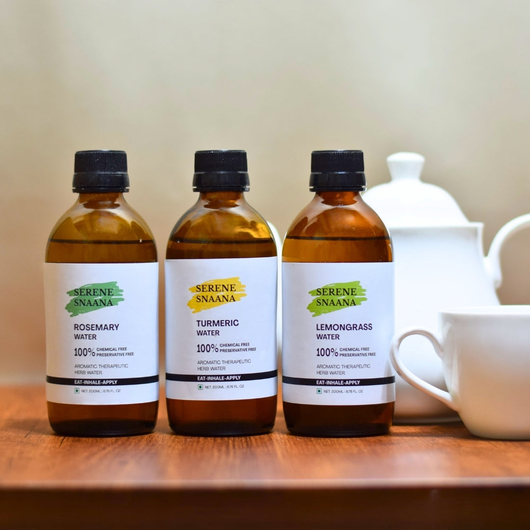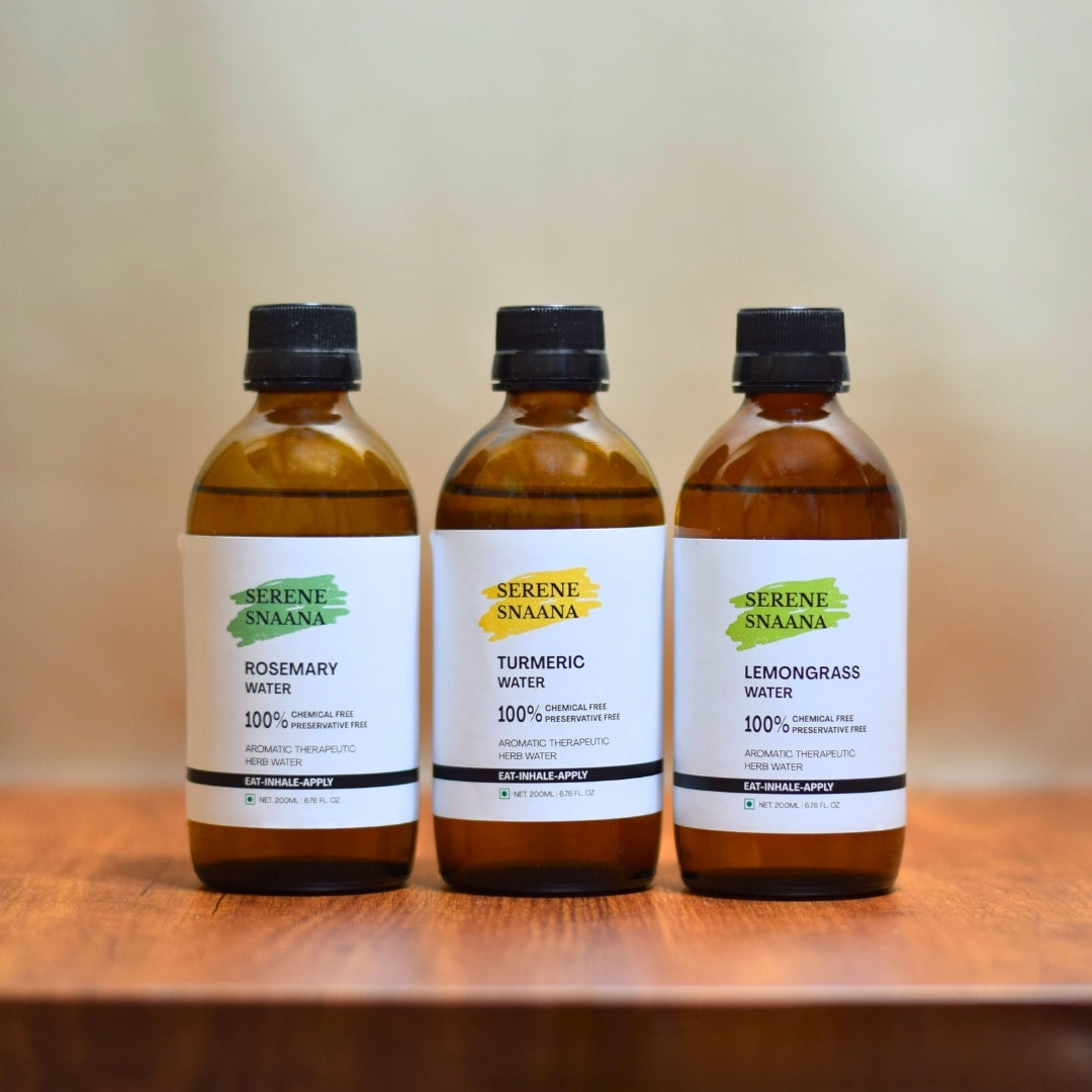 Refresh and purify naturally with this hydrosol trio. Rosemary hydrosol boosts circulation and mental clarity, Turmeric hydrosol supports digestion and body detox, while Lemongrass hydrosol aids bloating relief and strengthens immunity. A pure, natural, and chemical-free combo designed for daily detox, skin nourishment, and overall wellness.