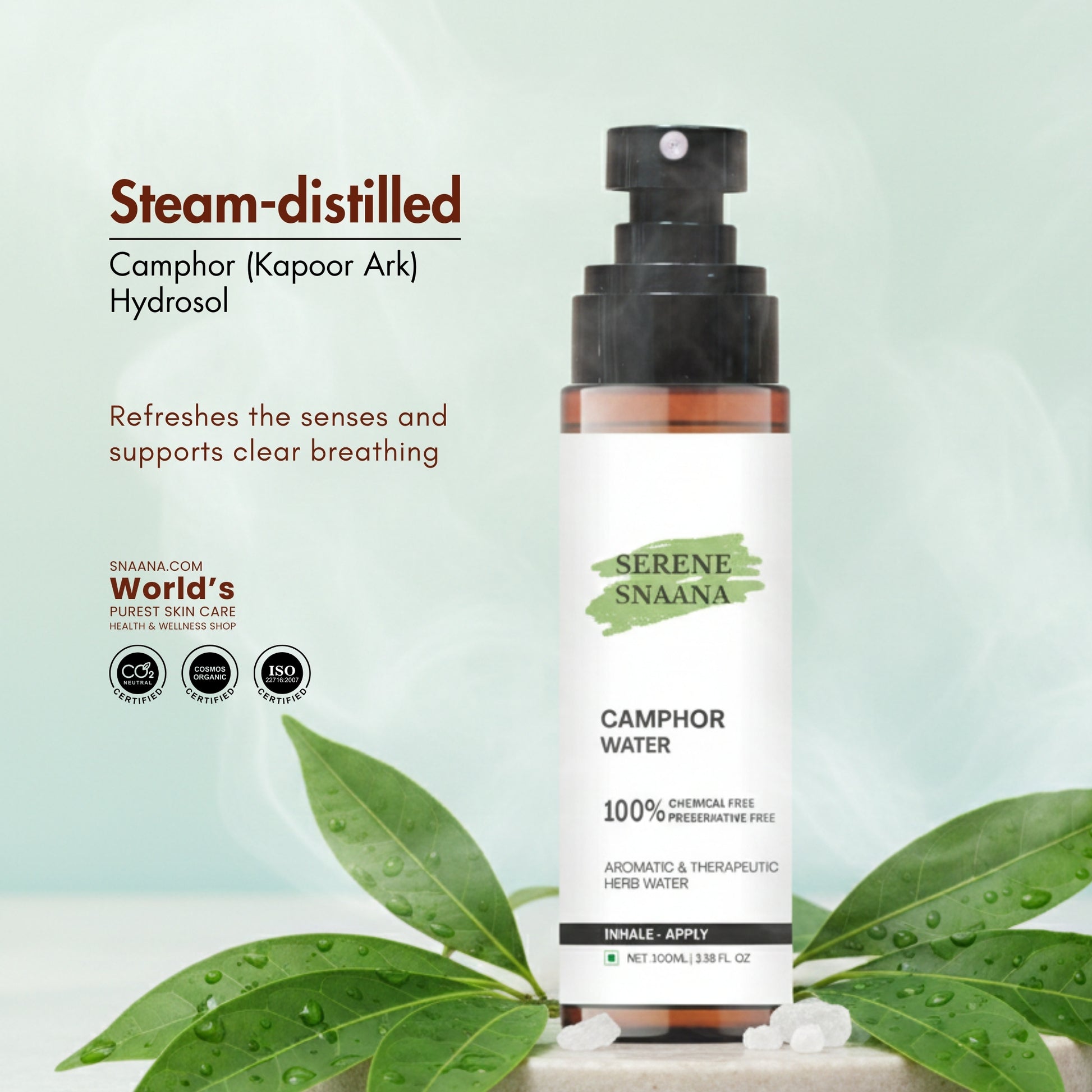 SNAANA prepares Organic camphor water -Ark using camphor leaves through the traditional technique of steam distillation which produces therapeutic water quick & convenient use.