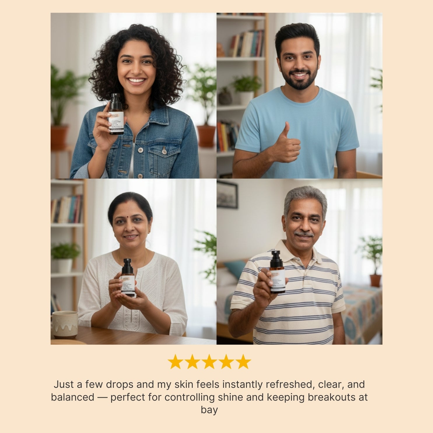 Clarity Boost 3 Drops Face Fluid is a lightweight blend of cucumber seed and jojoba oils, infused with lavender and orange essential oils. It hydrates, soothes, and protects acne-prone skin while balancing oil production for a clear, healthy glow.