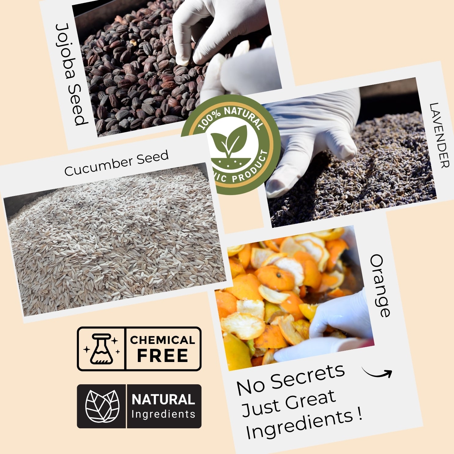 We make no use of chemicals/synthetics at all. Hence the nutrition, texture, aroma, colour are all derived from the ingredients like cold pressed oils, essential oils, ark etc.