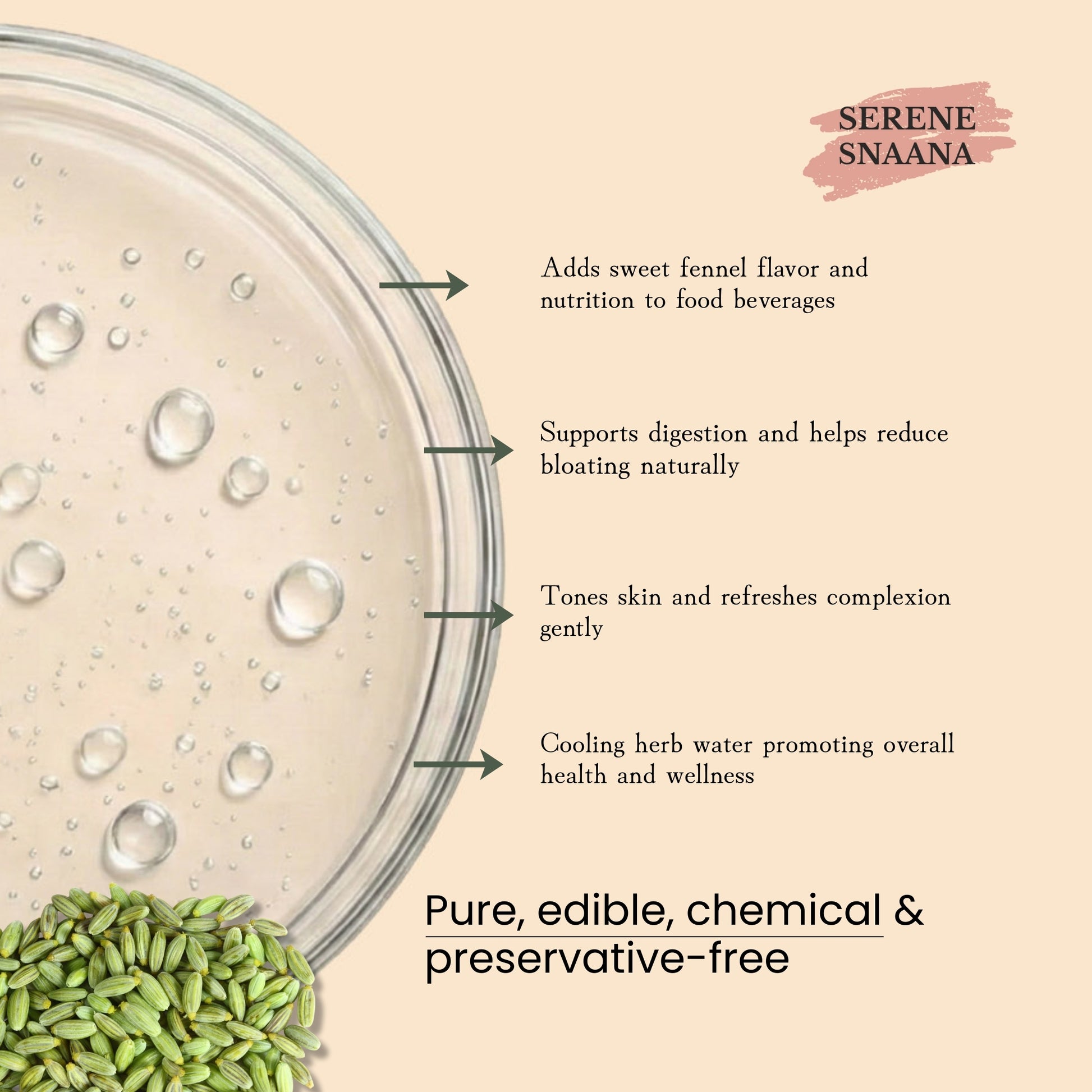 SNAANA prepares Organic fennel water -Ark through the traditional technique of steam distillation which results in potent – therapeutic water quick & convenient to consume & carry.