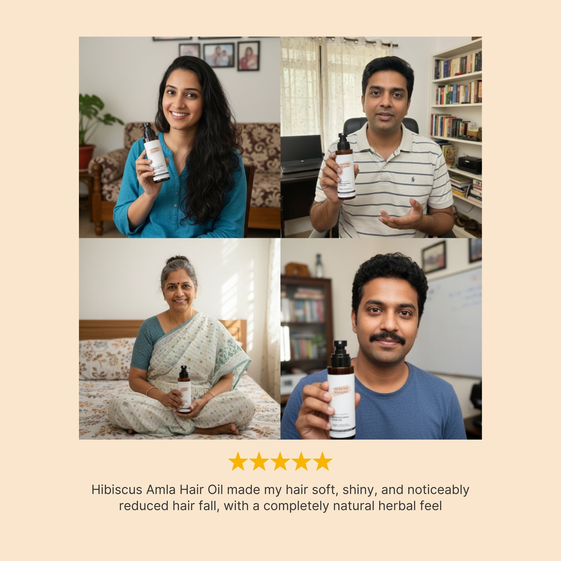 Hibiscus & amla dono ka combo amazing hai, scalp fresh lagta hai after massage.