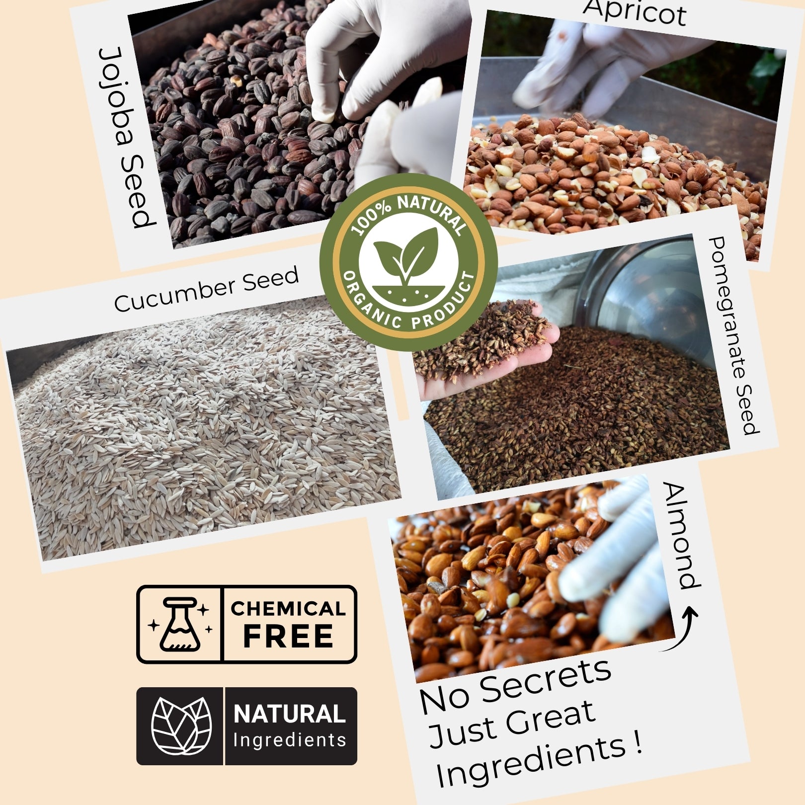 We make no use of chemicals/synthetics at all. Hence the nutrition, texture, aroma, colour are all derived from the ingredients like cold pressed oils, essential oils, ark etc.