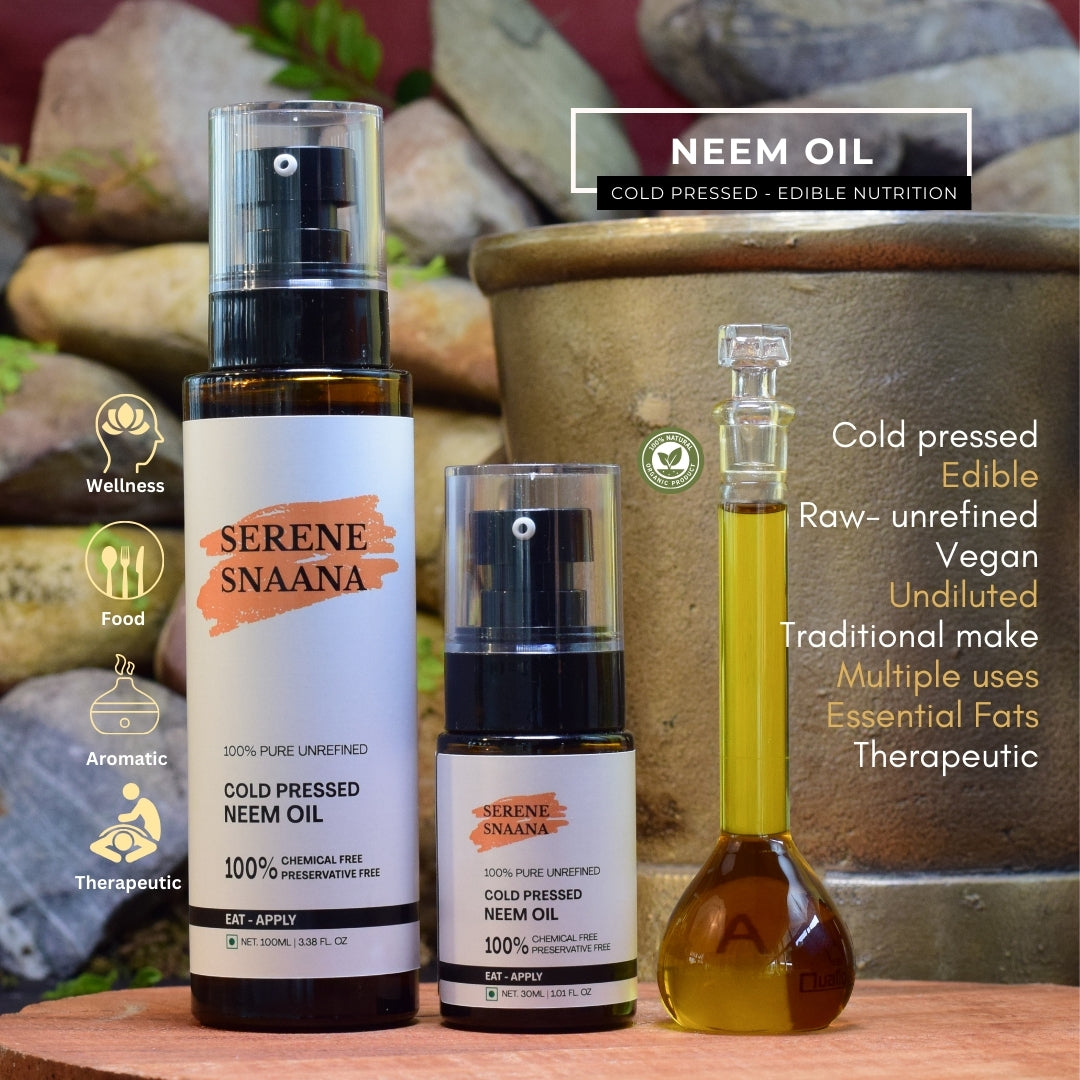 SNAANA Cold-pressed Neem Oil is a multi-purpose natural product that helps take care of one’s personal hygiene and health. It is extensively used in aromatherapy, oral care, wellness remedies, skincare, and insect repellent.